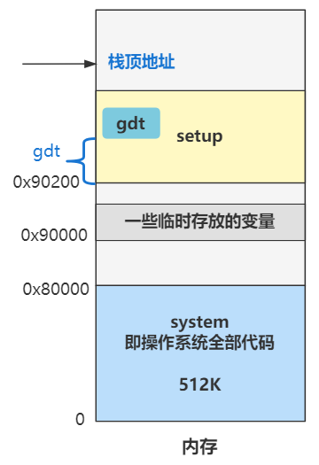 gdt 是个标签,表示在本文件内的偏移量,而本文件是 setup.s,编译后是放在 0x90200 这个内存地址的,还记得吧?所以要加上 0x90200 这个值。