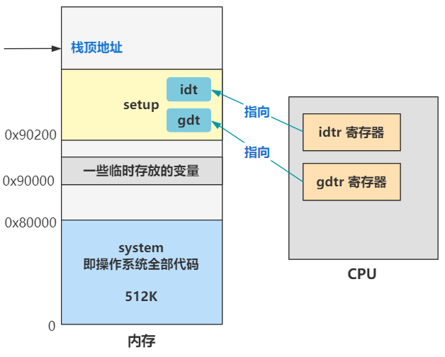 首先配置了全局描述符表gdt和中断描述符表idt