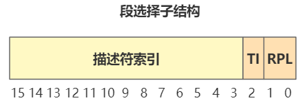 刚刚那个 ds 寄存器里存储的值,在实模式下叫做段基址,在保护模式下叫段选择子。段选择子里存储着段描述符的索引。